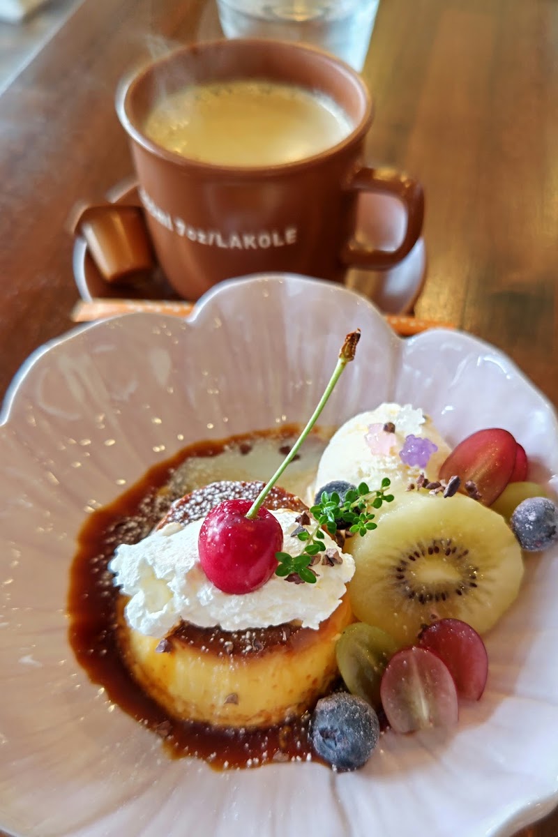Sweet tooths often return for プリンアラモード (pudding à la mode), which leans toward a nostalgic, firm-set custard rather than something overly soft or creamy. The rotating selection of bakery-style treats, like the 抹茶マフィン and ガトーショコラ, complements a well-made café latte or carefully brewed coffee. Seasonal or house-made touches, such as the 自家製梅シロップ (homemade plum syrup), offer an unexpected, wholesome twist to the drink lineup.
